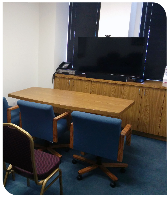 Our media conference room B is suitable for smaller depositions, meetings, training or video conference.